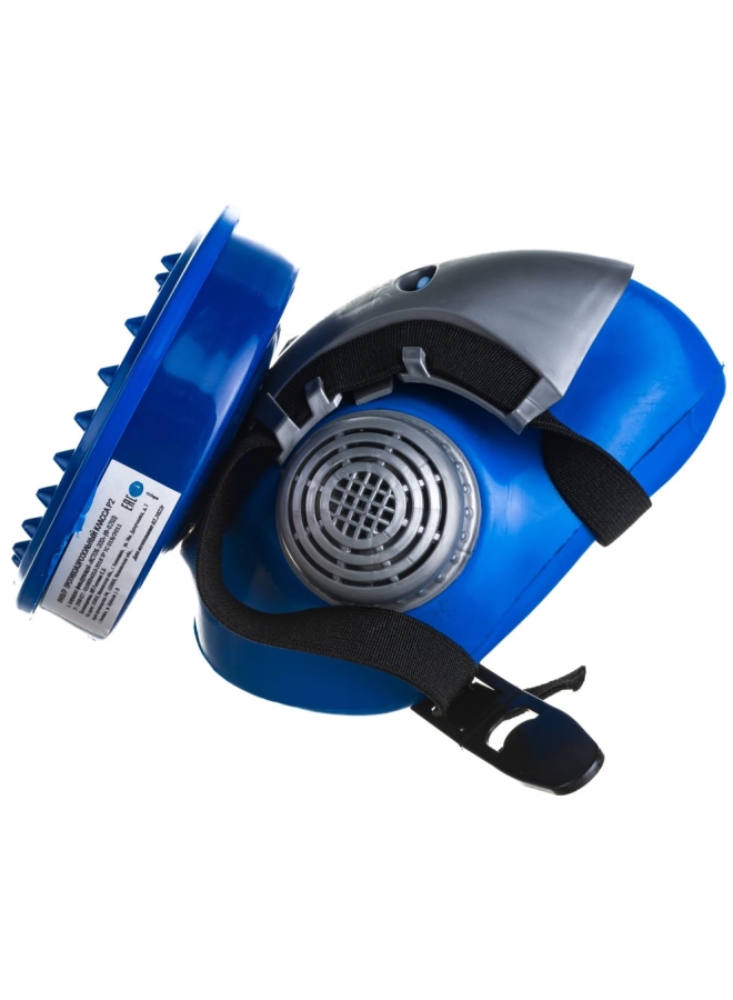 Модель: полумаска из мягкого гипоаллергенного эластомера со сменным фильтром Р2. Герметичная изоляция по всей линии обтюрации. Регулируемое оголовье.